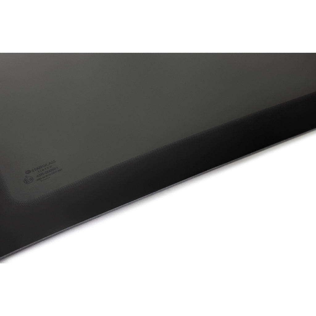Fritted Glass - The black ceramic 'frit' paint pattern on the inside of the glass prevents visibility of any cut metal from the outside of your van conversion