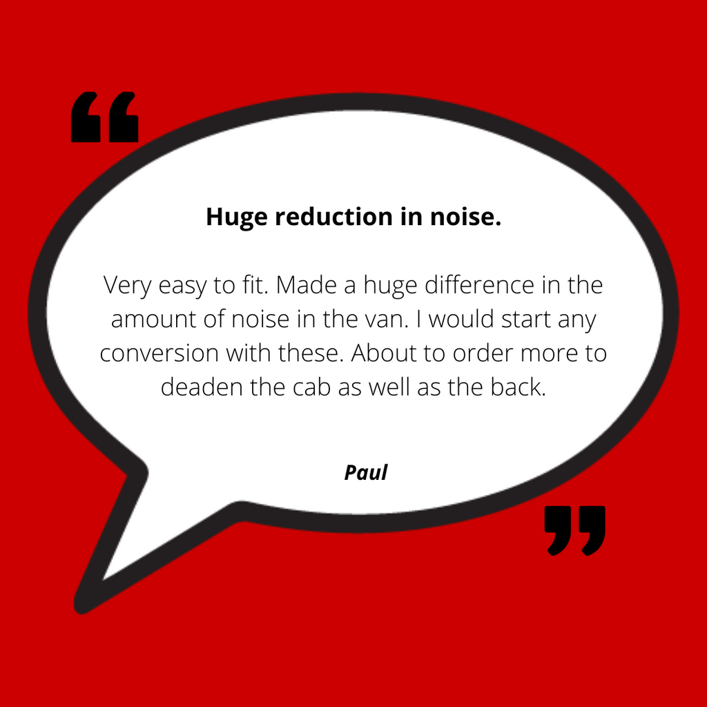 "I didn’t want my new van to have the same booming panel noise as the last one. Put some of this sound blocker on and was amazed at the difference. Would highly recommend." - Ian