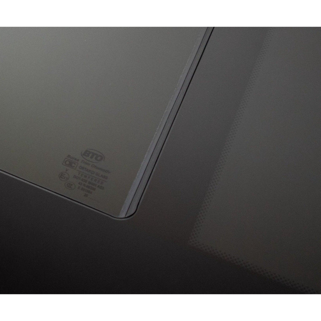 Fritted Glass - The black ceramic 'frit' paint pattern on the inside of the glass prevents visibility of any cut metal from the outside of your van conversion