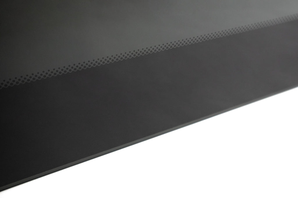 Fritted Glass - The black ceramic 'frit' paint pattern on the inside of the glass prevents visibility of any cut metal from the outside of your van conversion