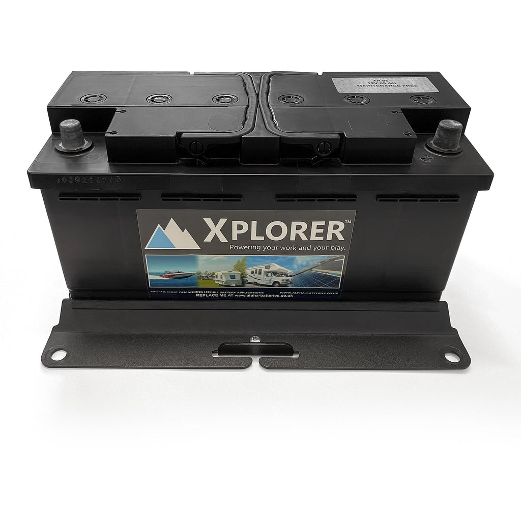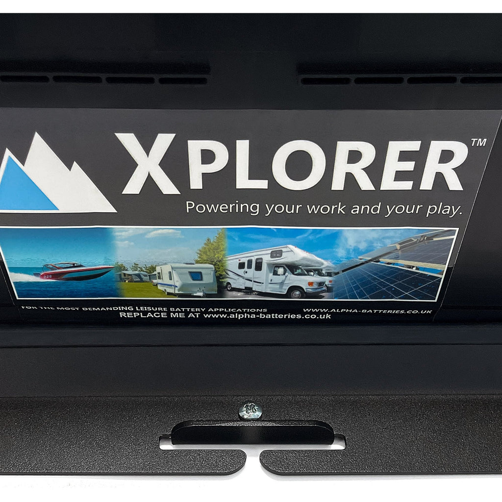 It holds your 12v lead acid battery in place using the batteries feet - so it will stay safe and secure in an upright position. Lead acid batteries are a standard size (about 165mm or 175mm including the feet) so this bracket will fit them all perfectly.